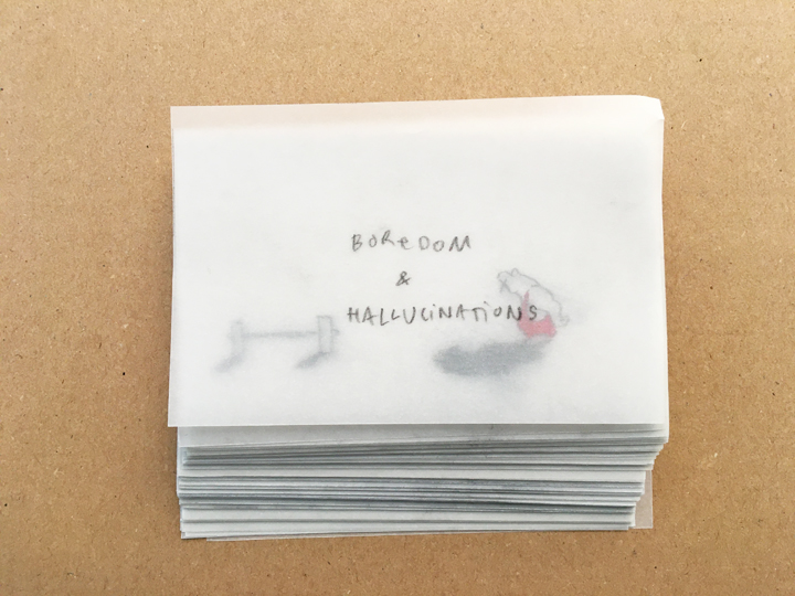 Avorriment i al·lucinacions, és una sèrie de dibuixos en moviment creats durant el confinament motivat per la COVID19 (març-maig 2020) que explora idees com construir una rutina, l'esforç, la futilitat... i com no podria ser d'altra manera, l'espaialitat o el repensar l'espai domèstic. Sense guió, l'animació s'improvitza: un fotograma inspira el següent moviment/fotograma, acceptant la incertesa de com evolucionarà tot plegat. Totes les animacions se centren en un aixecador de pesos atrapat entre els límits del pla.